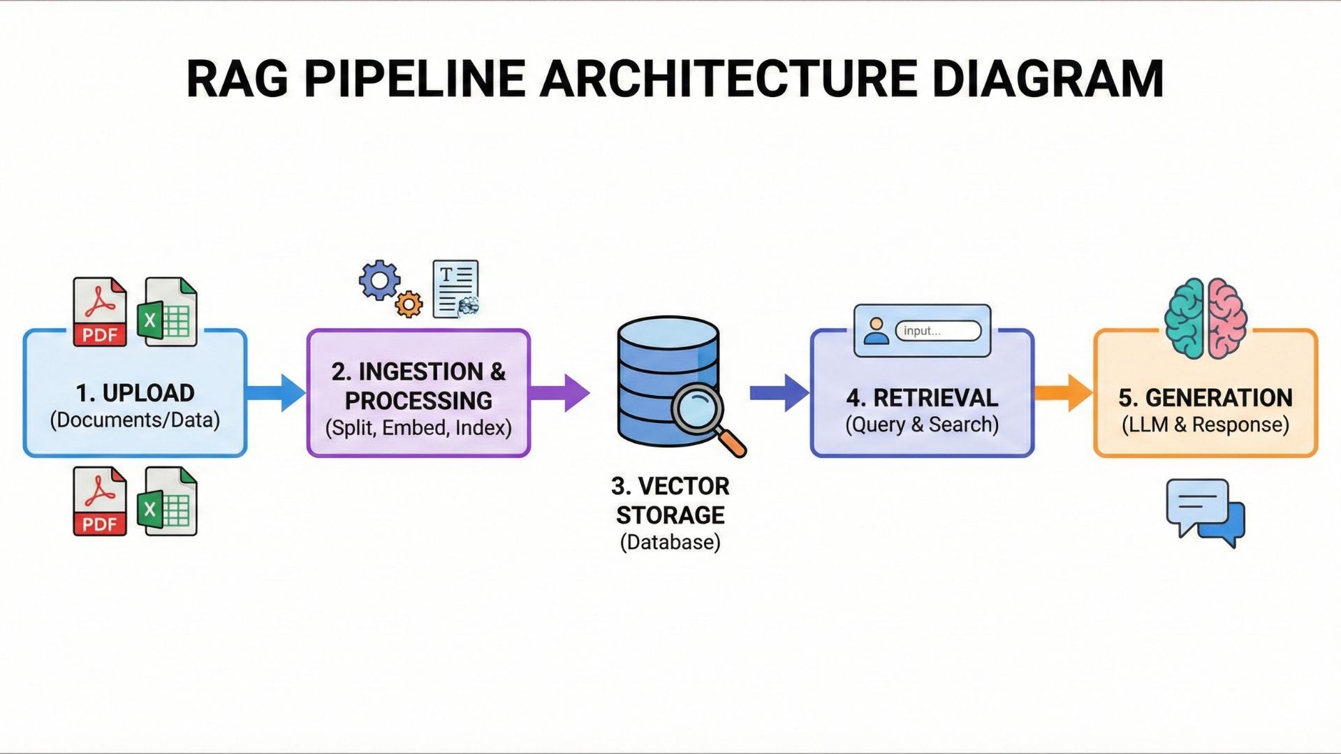 Visualizing the complete flow: Upload → Ingestion → Vector Storage → Retrieval → Generation