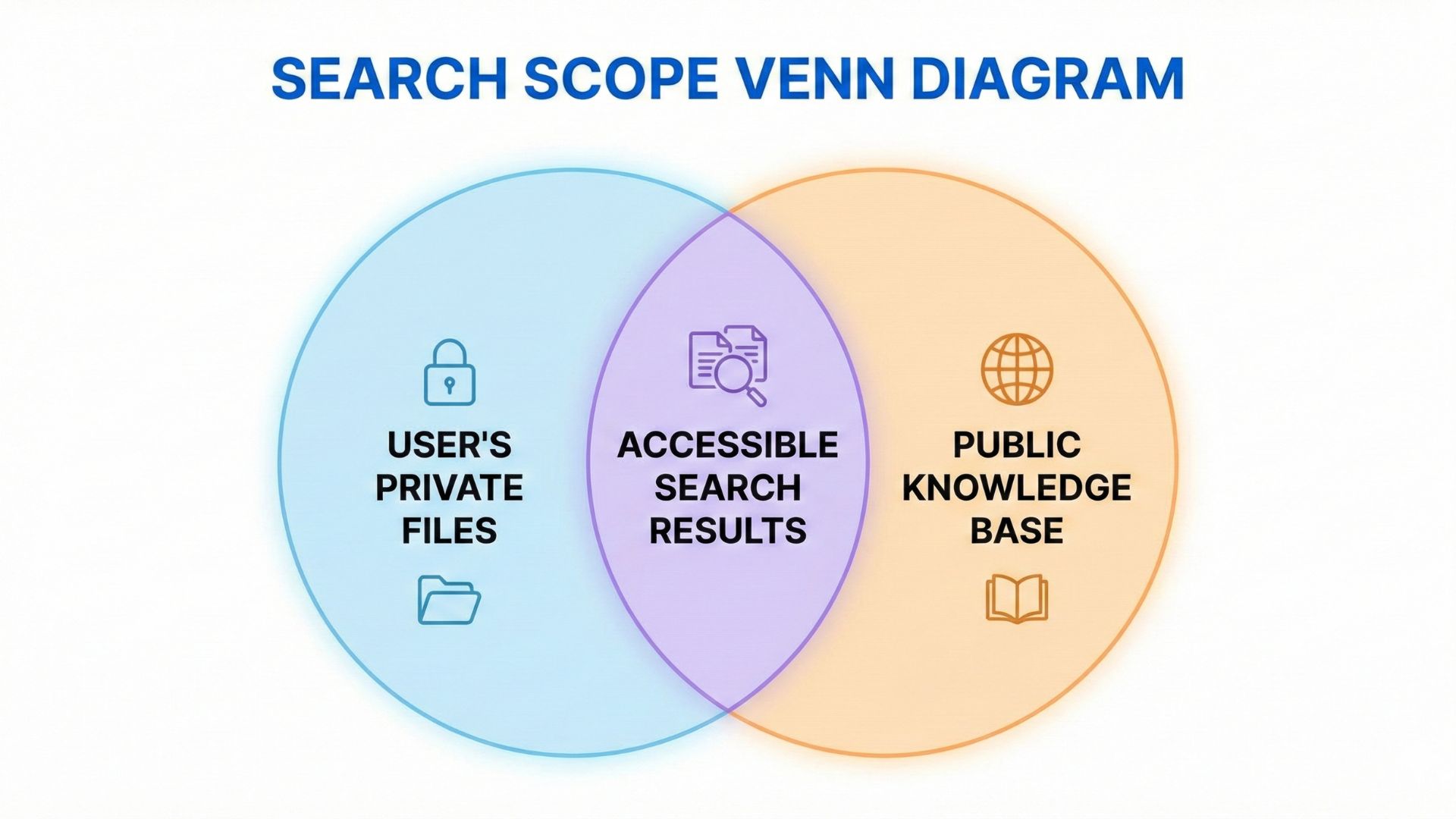 This ensures users can only search their own documents plus any documents marked as public. Multi-tenancy is built into the database layer—no application-level filtering required.