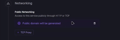 In the Networking section and under "Public Networking" click on "Generate Domain".