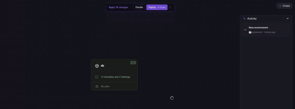 Now we need to deploy the app. Make sure to push it into a new github repo, then in railway project, click on the "Create" button.